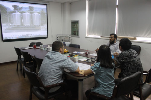 The two customers from Yemen ordered a number of stainless steel tanks in 2013, and they highly approve our product’s quality and sincere service. At present, their company business has expanded a lot, so they need to order a full set of tomato paste production line equipment. In May 29, 2014, the two customers from Yemen once again came to our company to negotiate with sales staff and engineers on specific details.