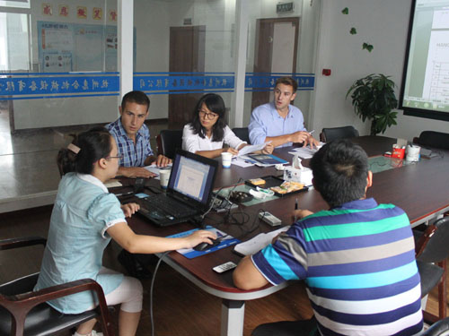 The customer from America due to the expanding business need to order the whole set exploded eggs production line, they come to our company to talk with sales staff and engineers about the specific details of the negotiations.