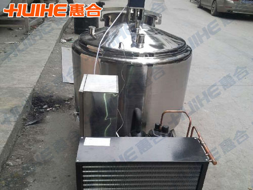 Vertical cooling milk pot is mainly composed of stainless steel tank body, stirrer, washing machine, cooling unit and electric control boxes.