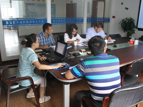 2014年9月11日,美國(guó)客戶因業(yè)務(wù)擴(kuò)展需要訂制全套爆爆蛋生產(chǎn)線設(shè)備,來(lái)我公司與銷售人員和工程師進(jìn)行具體細(xì)節(jié)的洽談。
