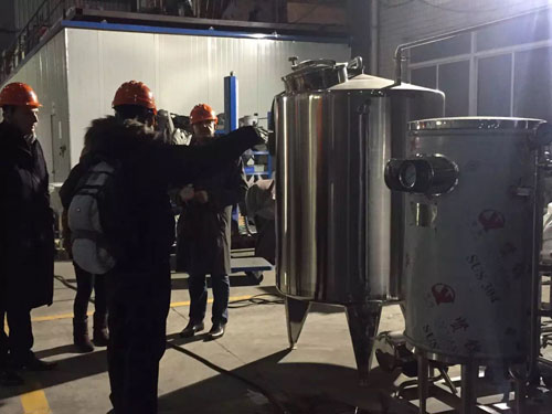 經(jīng)過與外貿(mào)業(yè)務員的多次溝通與確認,加拿大客戶于2015年10月在我公司下單一臺真空乳化機。目前設備已接近收尾工作,客戶來我公司驗貨,業(yè)務員與技術工程師熱情接待并為其講解了真空乳化機的各組成部件與操作方法,并進行了試機操作,后又帶客戶參觀了我公司的其它食品機械設備。