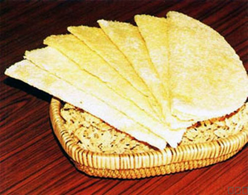 奶皮子,是把馬、羊、牛和駱駝鮮乳倒入鍋中慢火微煮,等其表面凝結(jié)一層臘脂肪,用筷子挑起掛通風(fēng)處晾干即為奶皮子。屬鮮奶中的精華奶皮,蒙古語(yǔ)稱“烏如木”,是奶食品系列中的佳品,營(yíng)養(yǎng)價(jià)值頗高。