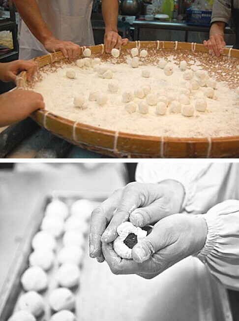湯圓的做法和包餃子的過程類似:先將糯米粉加水和成團(tuán),然后放置幾小時“醒”透,包湯圓的時候就掐料(一般是花生、芝麻)取一小團(tuán),捏成圓片,然后把餡料放進(jìn)去,更后揉成圓球。