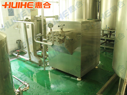 冰淇淋混合料通過第一級均質(zhì)閥(高壓閥)使脂肪球粉碎達(dá)到1~2μm,再通過第二級均質(zhì)閥(低壓閥)以達(dá)到分散的作用,從而冰淇淋物理結(jié)構(gòu)中脂肪球達(dá)到規(guī)定的尺寸。使組織細(xì)膩潤滑,所以均質(zhì)機(jī)的質(zhì)量好壞對冰淇淋質(zhì)量有直接的影響。