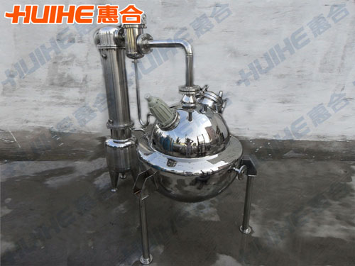 將球形濃縮器的真空口和進料口閥門打開,將液料抽入罐內(nèi),罐內(nèi)液面達到一定高度后,關(guān)閉進料閥,并緩緩開放蒸汽進口閥門,將罐內(nèi)液體的沸騰數(shù)分鐘后,注意保持該時的蒸汽壓力和真空程序(亦可通過溫度控制,使沸騰正常進行)。蒸餾液體通過分離器,其中部分回流至主體罐內(nèi)。不凝部分通過冷凝器冷凝成液進入受料桶,進行加收或排放,濃縮結(jié)束后,關(guān)閉真空口,蒸汽口閥門,打開放空口(即直嘴式旋塞閥)常壓后出料。